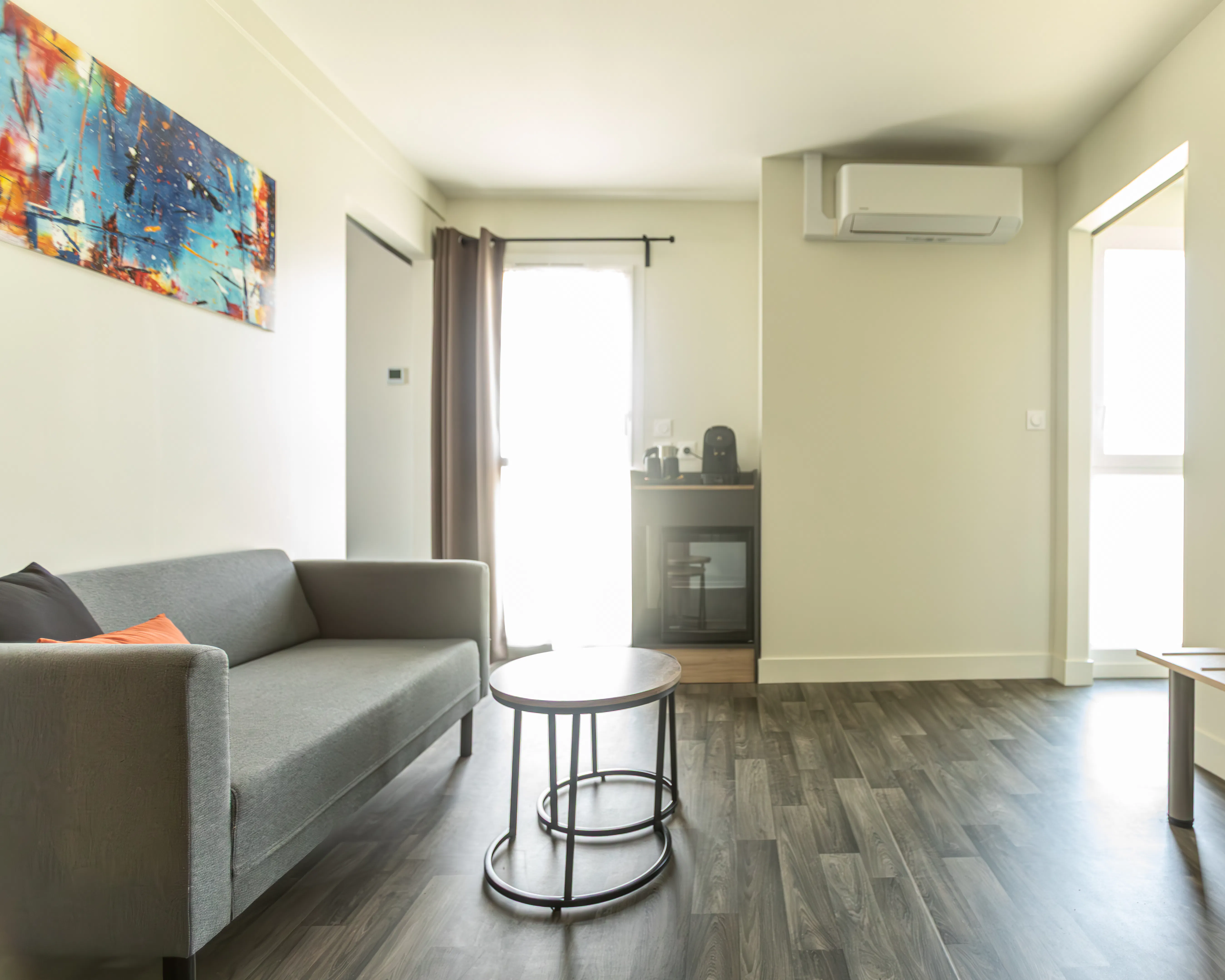 Diese Suite verfügt über ein 160-cm-Bett mit flauschiger Bettdecke, Flachbildschirm, Tee-/Kaffeezubereitungsmöglichkeiten, Kaffeemaschine, Kühlschrank,klimatisierte und kostenlosem WIFI.
